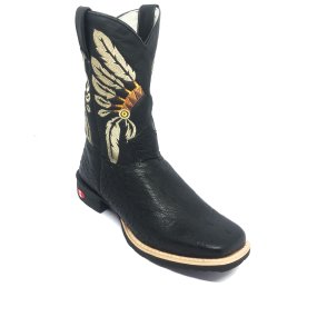 Bota de Barriga de Avestruz Preta - Cano Alto, Bico Quadrado, Solado Flex Comfort