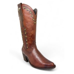 Bota de Couro Bovino Bufalada Caramelo Burned - Cano Alto, Bico Quadrado, Solado Flex Comfort