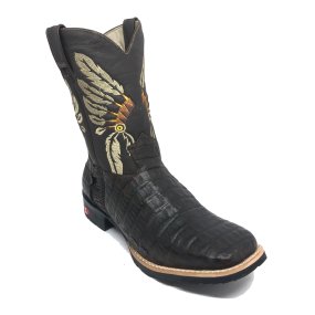 Bota de Couro de Jacaré Tabaco Rabo - Cano Médio, Bico Quadrado, Solado Flex Comfort
