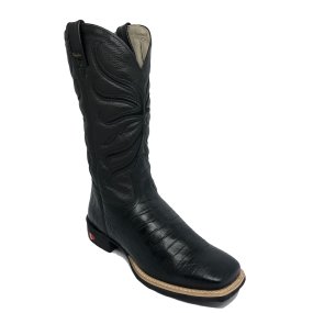 Bota de Jacaré Preto Rabo - Cano Alto, Bico Quadrado, SOLADO S-FLEX ARTESANAL